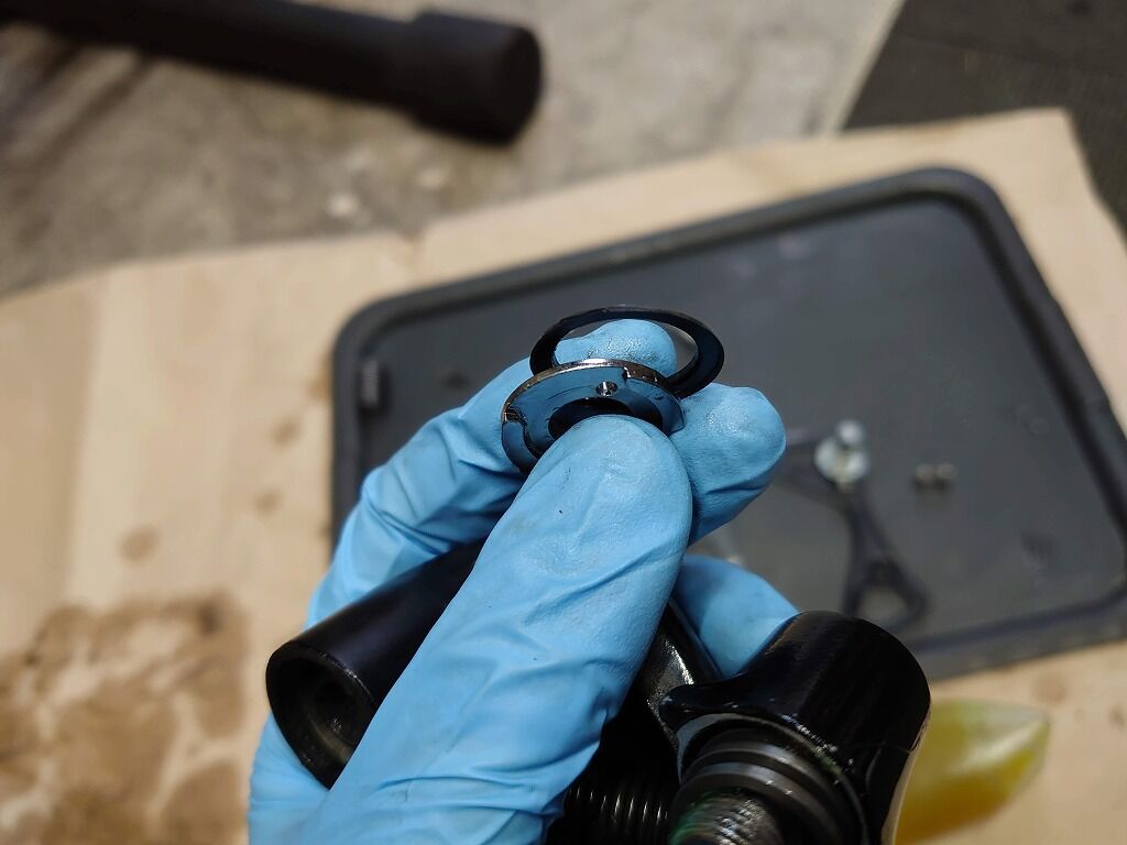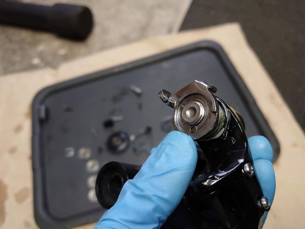 Cリングをはめるまでは気を抜かないようにします。Cリングを止めるまでは落っことしでもしたら再びバラバラになります(笑)