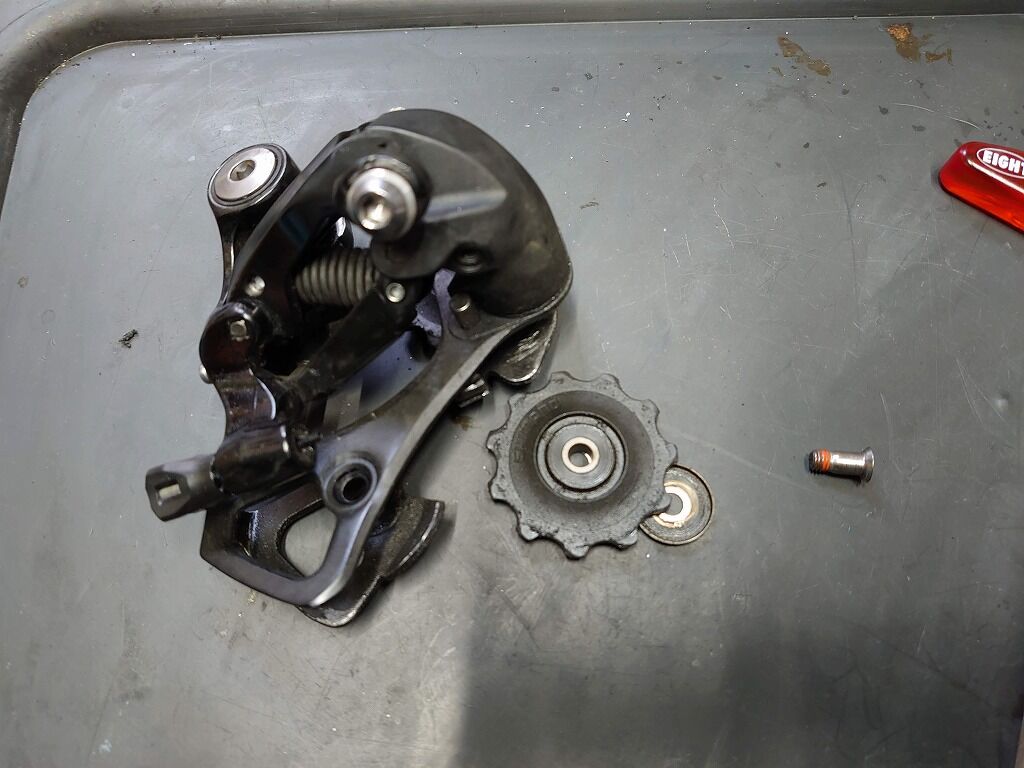 5800のリアディレイラーのプーリー部(プレート部)をバラす際は11速の後期型(8000,9100)のやり方と似ています。