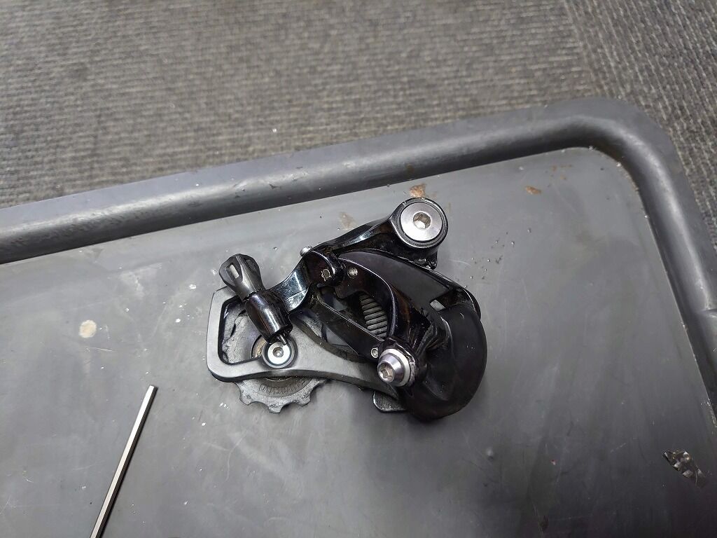 今回は主役は第一世代(初期)の11速の105の機械式、いわゆるケーブル引きのリアディレイラーです。