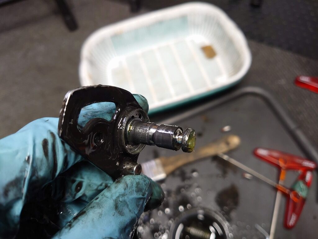 このように2軸部(B軸、プレート軸)をバラしましたが、汚れ方が明らかに違います。