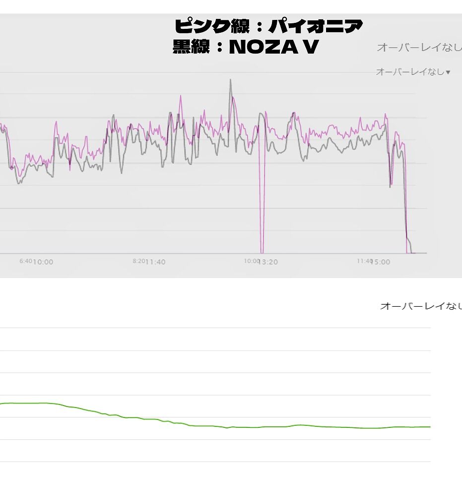 多少の差はありNOZA Vのほうが低い数値ですが、大体グラフは重なりこのぐらいなら普通ぐらいだと思われます。