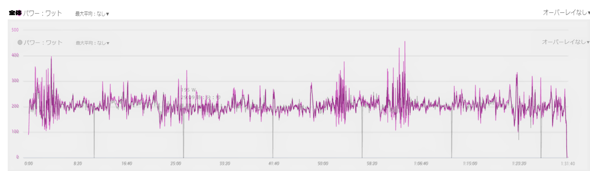 パワー値のがかなり触れているのはワタクシの走り方が下手だとお考えください。