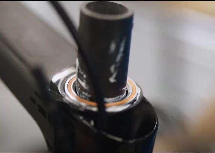 ホース類がヘッドベアリング内部を通るためのスペース確保としてD型のコラムを用いたり、真円型コラムの場合は上部ベアリング径が大きい(上下同径で1.5等)のが特徴です。