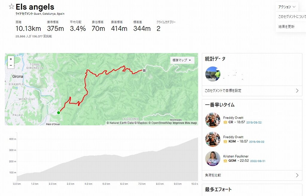 また速度は動画内では確認ができませんでしたが、Strava上で確認が取れたオリーさんの記録は平均速度で28.4km/hということです。