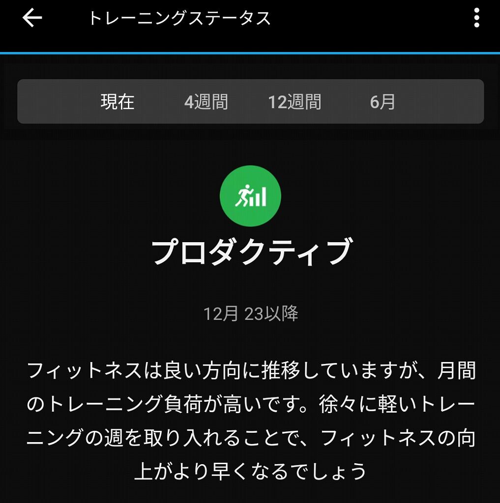 これらのことからも今回の体調不良からくるパワーと心拍数の関係をGarmin算出のVo2MAXの数値から異常を検知し、オーバーリーチ判定、要は”要休息”と言う判定となっていると考えられます。