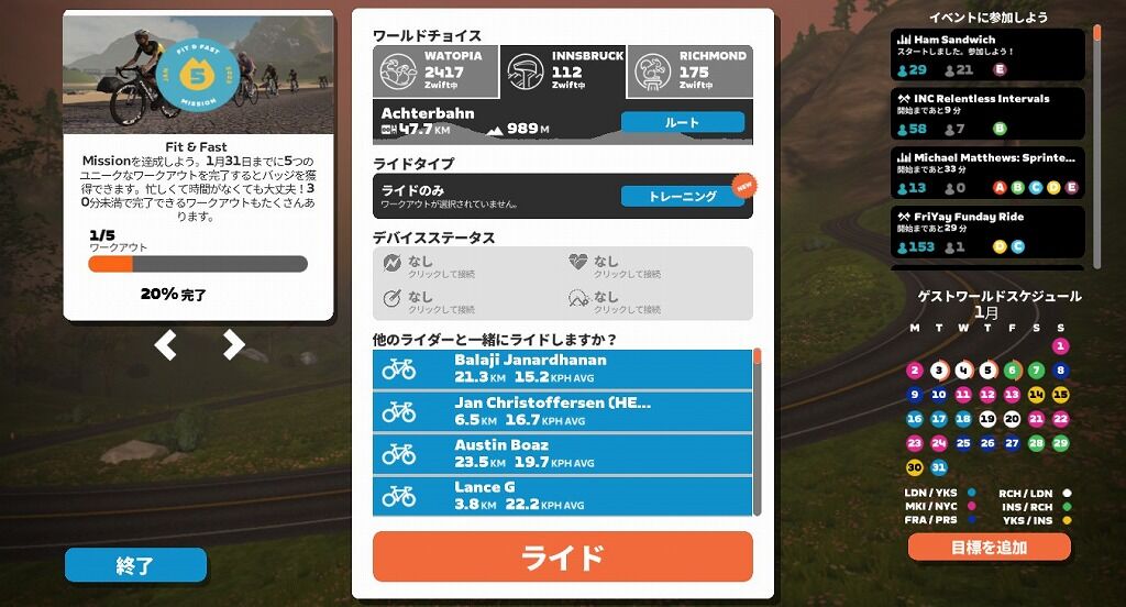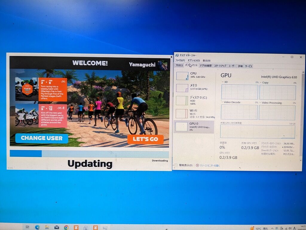 多少なりともZwiftを行うまでの起動や立ち上げ等には少々時間がかかりますが、普通にできました。