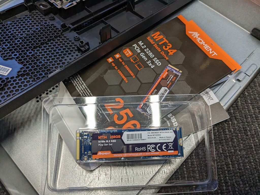 タイミングよくAmazonの初売りでM.2 NVMeのSSDもだいぶお安く手に入れることができました。128GBでも十分だとは思ったのですが、価格差が数百円だったので2,650円で256GBを選択しました。