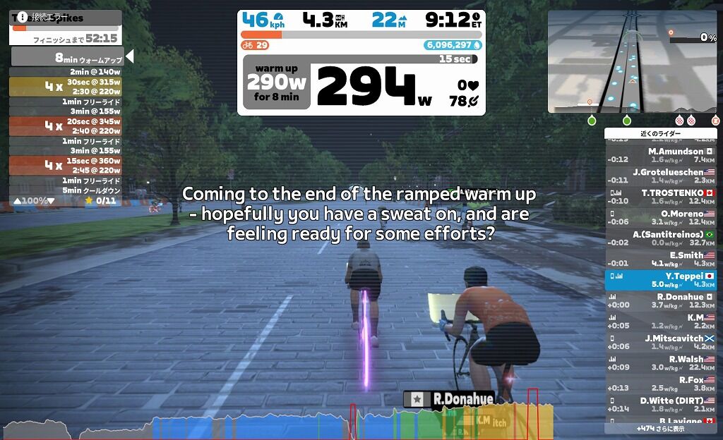とりあえずまずは何もいじらずにそのままの状態でZwiftをやってみました。