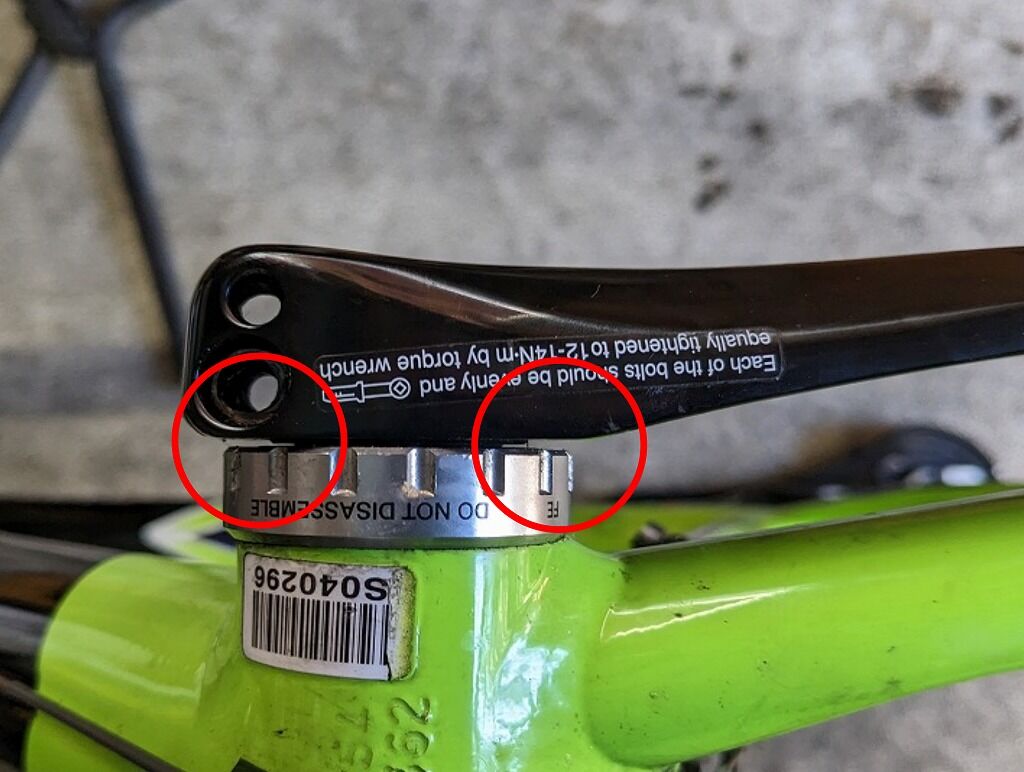 クランクを外した際に左側クランクの内側に回転に合わせたような擦り傷がある場合、特に注意が必要です