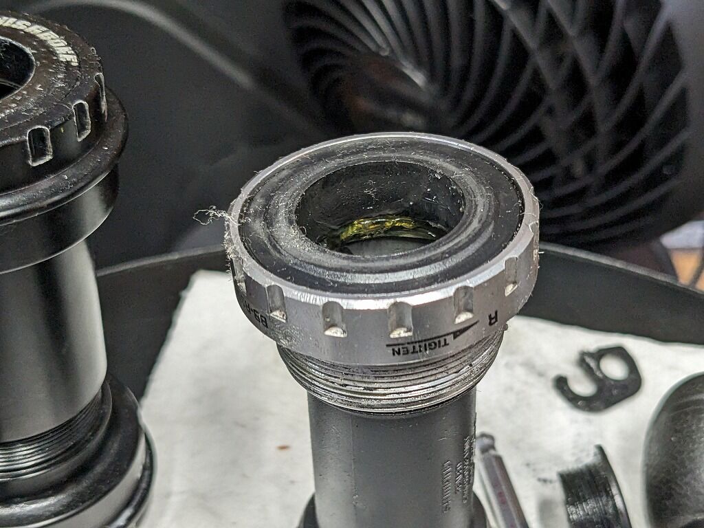 少々汚くて恐縮ですが、BBのベアリング部(シール部)のほうがやはり高くなっているのです。