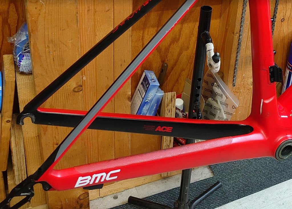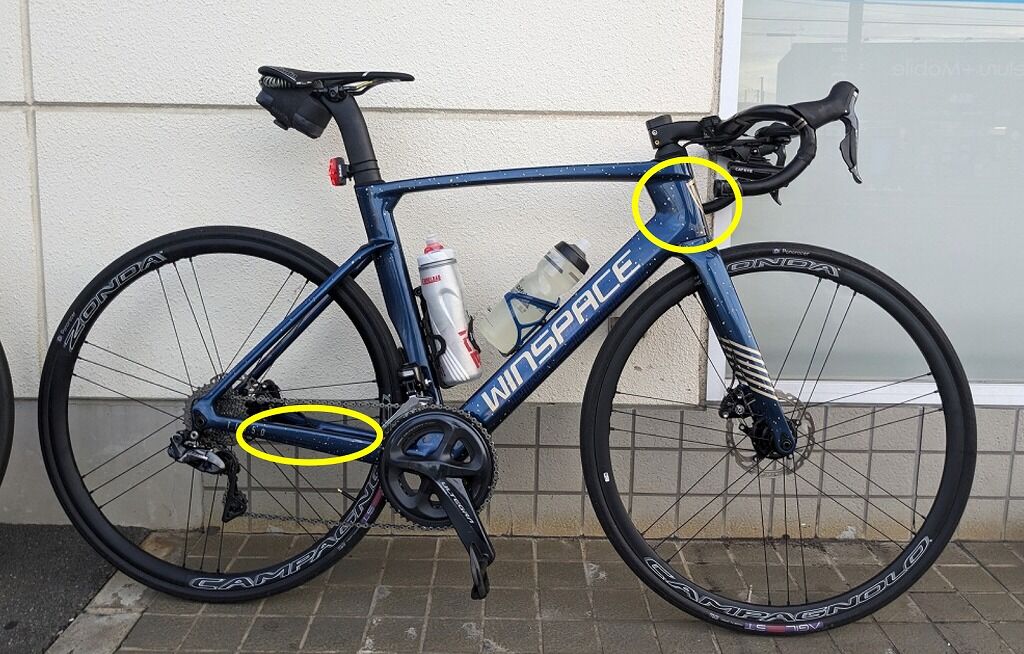 ロードバイクの構造上どうしても普通に乗っているだけでも、傷がついてしまうことのある場所があります。場所は主に2箇所で右側チェーンステー上部と、ヘッドチューブ周りです。