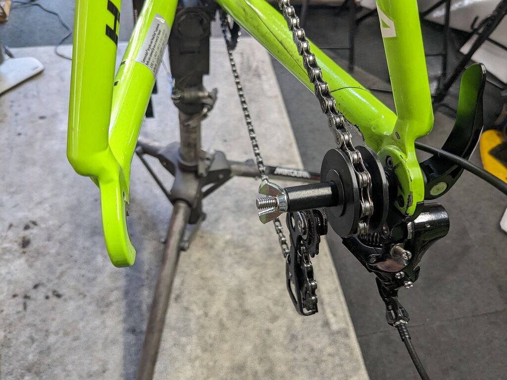 これでリムブレーキ車のチェーンキーパーのようにチェーンを回すことができるようになります。