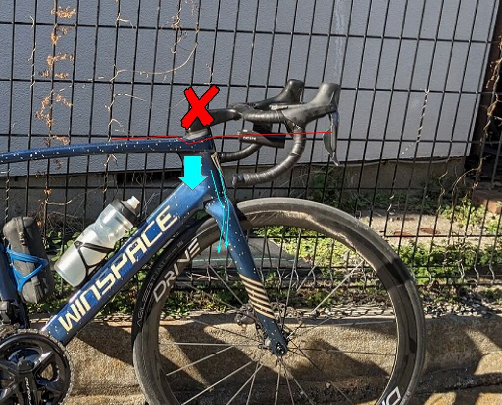 これは上部ヘッドパーツの隙間からの水の侵入がしやすい構造のものが多いから、そしてここよりも上に洗剤をかけて洗うメリットとヘッドパーツへの水の侵入のデメリットを考慮した結果です。