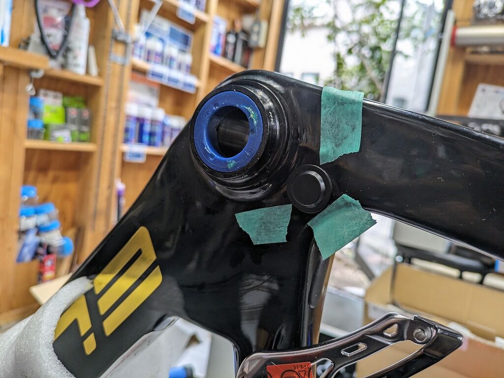 規格はPF30、以前は左右結合式のBBが付属していましたが、今回は別体式の圧入式BBでした。