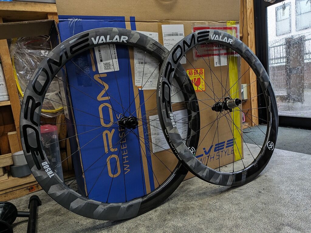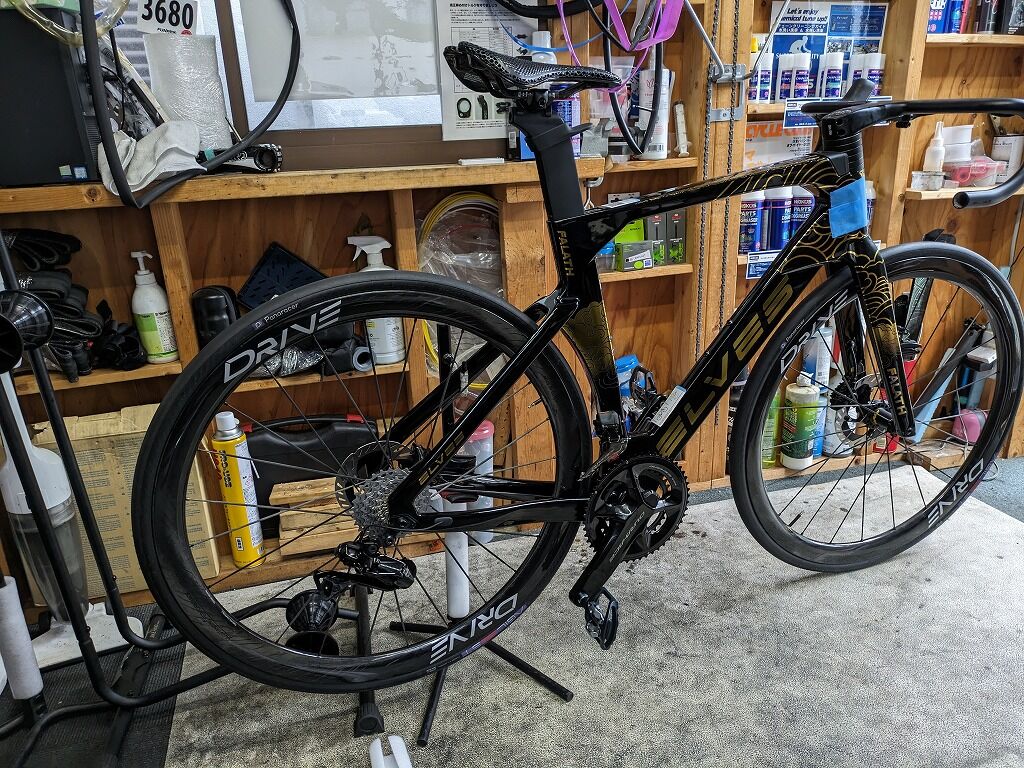 と、ホイールの到着がまだだったので、とりあえずお店に転がっているDRIVEの40mmで組みました。