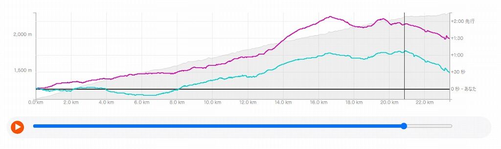 特に大きく開くのが、13k~17km地点まで、走ってみると辛い時間帯なのです。