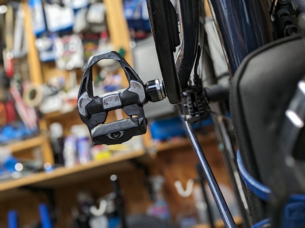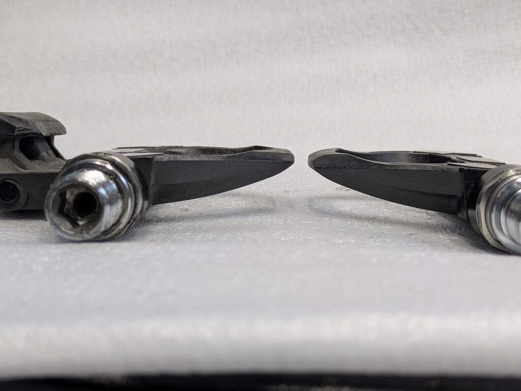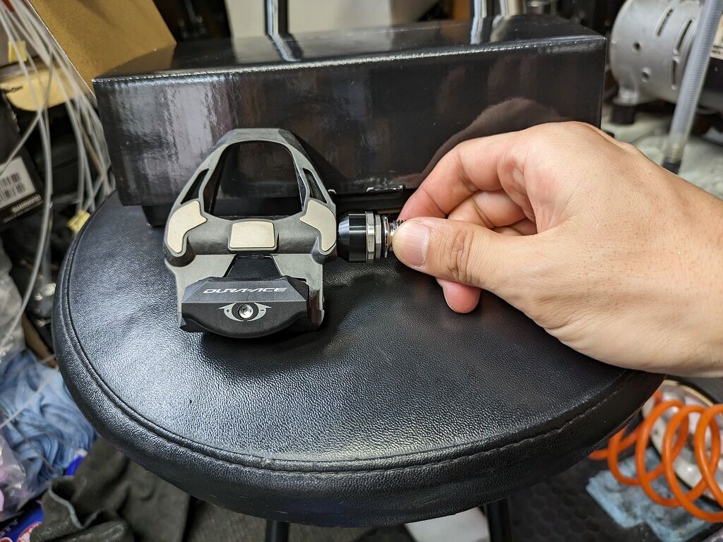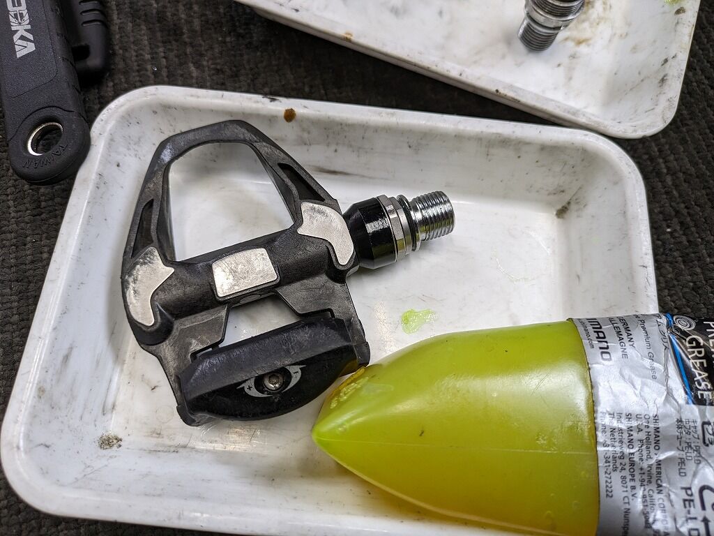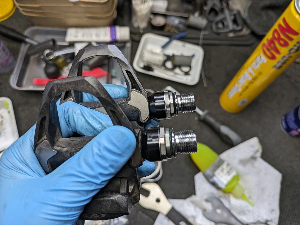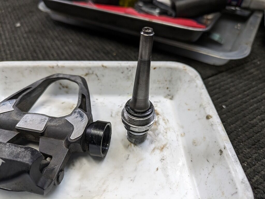 ちなみに下のグレード、例えば105やもっとしたのグレードのペダルとかの場合、ここまではもたないです。というのも105のペダルやエントリーグレードのペダルの場合、ビンディング部がグズグズになってしまう個体を比較的多くみます。ビンディングは前述のように交換ができませんので、ペダル全体での交換となってしまいます。