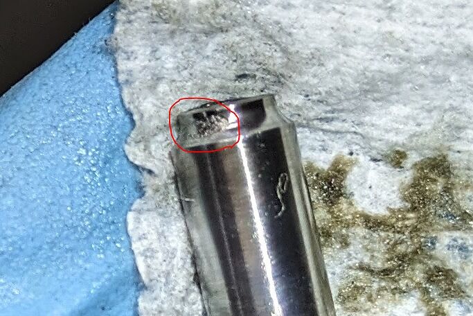 先端こそ摩耗していますが、ボディはやはり摩耗する部分は金属プレートの影響で若干は摩耗が抑えられているイメージです。