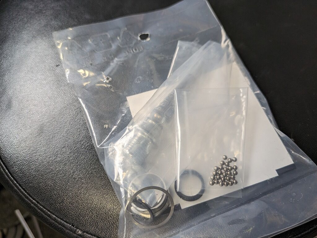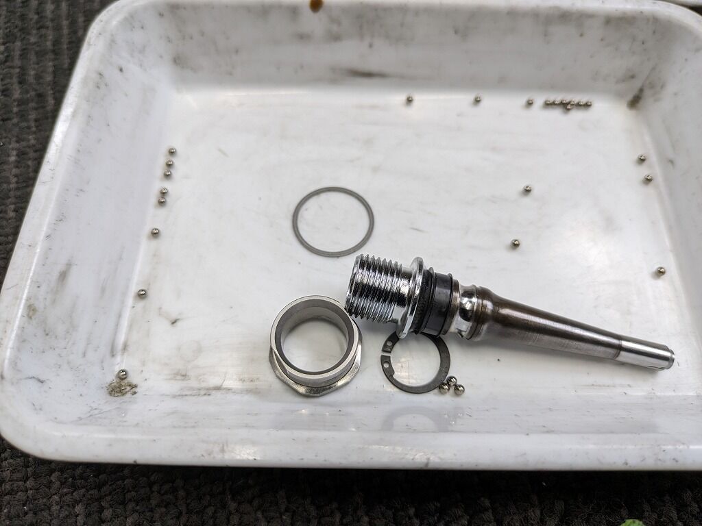 交換用のパーツには鋼球(ベアリングボール)が9+17個含まれます。内部をキレイにしてからベアリング球も含めすべてのパーツをまるっと交換致します。