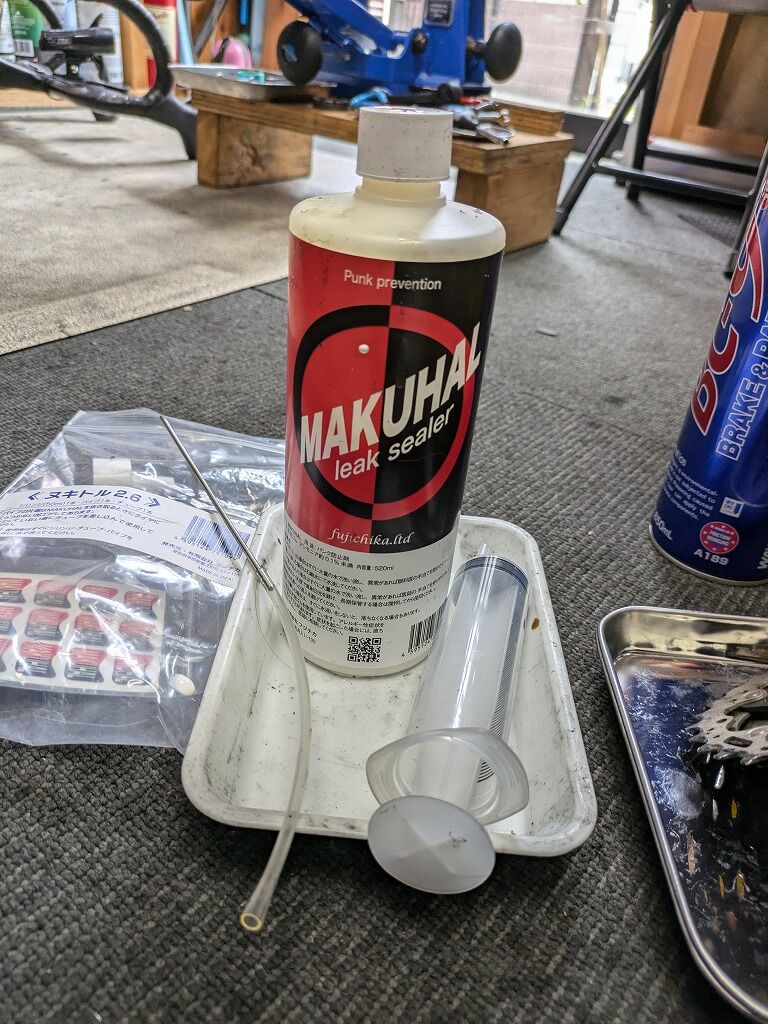 今回は通常のシーラントだとクリンチャーよりも結構重たくなってしまいますので、マクハルを使用することにしました。