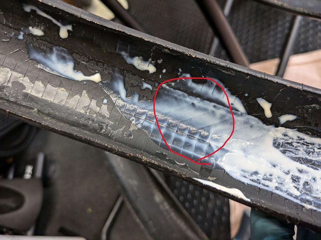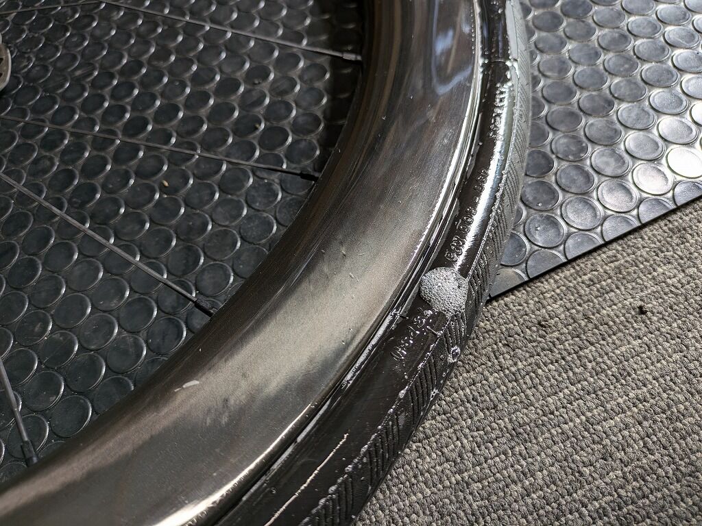 これは失敗例の一つですが、明らかにサイドウォールからのエア漏れが確認できます。