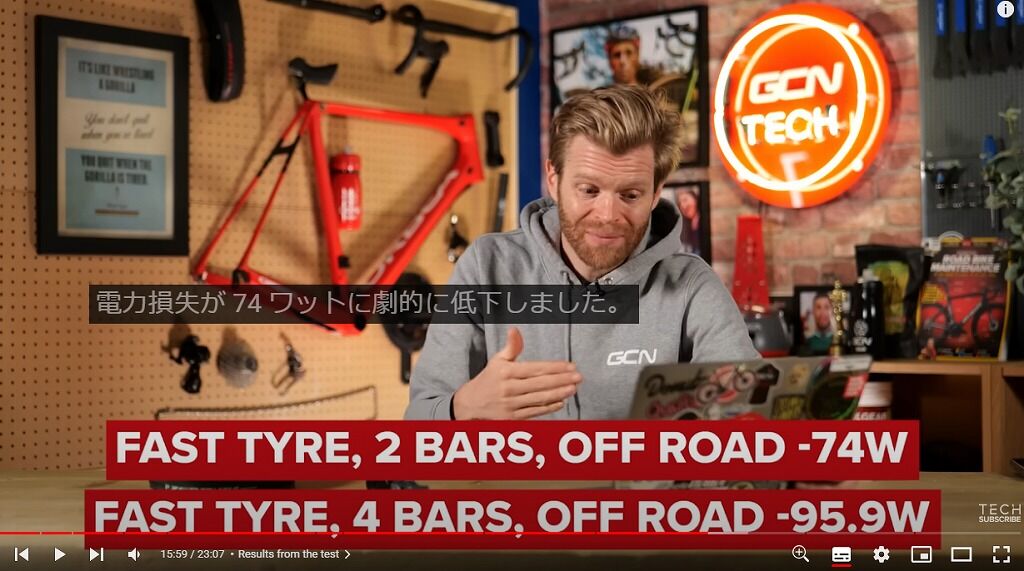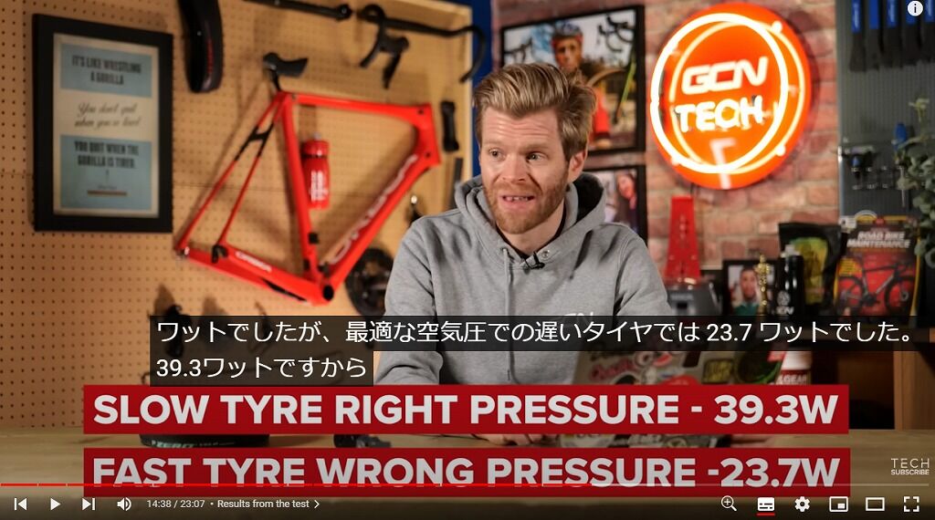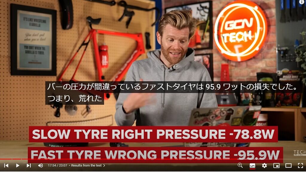 ではこういった状況下での空気圧とパワーの関係、タイヤの空気圧の重要性を世界のGCNが実験しました。路面状況におけるタイヤの空気圧とパワーロスの話、その答えはGCNの動画より、そんなお話です。