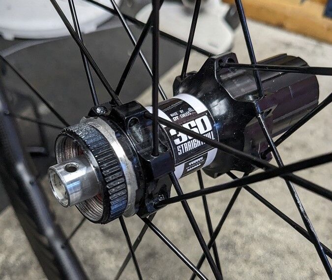 なめらかに回らないどころか、ホイールはどんなに調整をしてもひどいガタが取れず、変速調整やブレーキの調整も意味をなさないような状態です。
