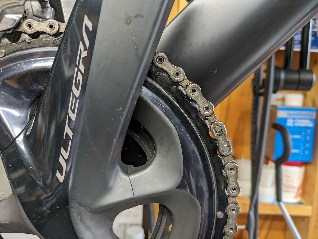 通常はチェーンが伸びると刺さってしまうのですが、逆に伸びすぎてて刺さらない、という状態です。
