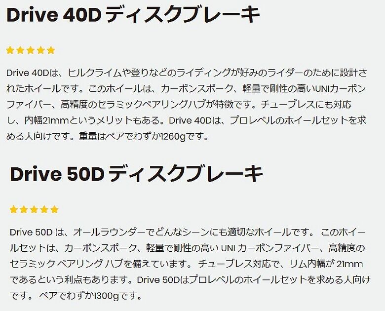DRIVEの40Dと50Dのメーカーの説明です。