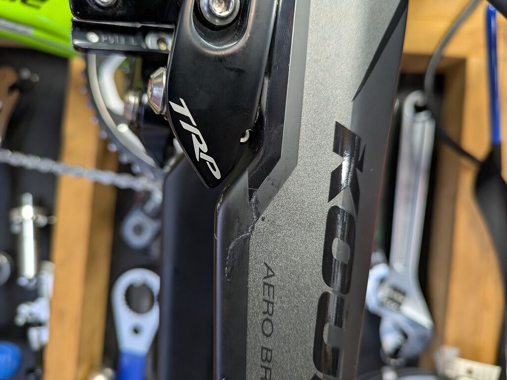 調整はRSタイプ(リアシートステータイプ)よりも難しく、汚れの影響を受けやすい、またクランク型のパワーメーターとの干渉の問題があります。しかし逆にもともと剛性のある部分に取り付けられること、シートステーの柔軟性を持たせられること、空力的なメリット等もあり過去にはエアロ系のロードバイクで採用されているものも少なくはありませんでした。