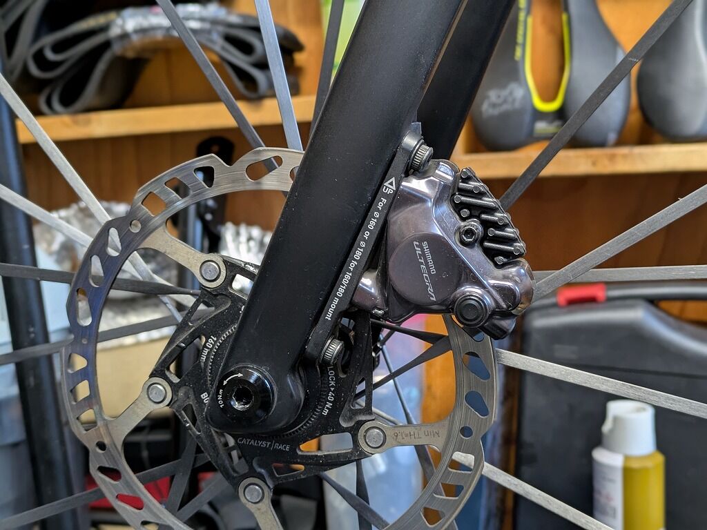 その構造上リムブレーキでは欠かせなかった、シューの摩耗による引き代調整の必要性です。構造上一気にパッドが減るような状況下においては、機会式のディスクブレーキは引き代が大きくなりすぎてしまい、最悪ブレーキが効かない状況に陥ってしまう場合もあります。一気に摩耗しない場合でもパッドの摩耗に応じてブレーキの調整が必要不可欠です。