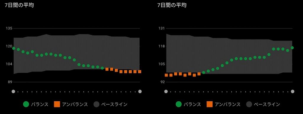 以前はVo2MAXの数値を元に算出されていましたようですが、最近ではHRVステータスを元に算出さすることもできるようになったとのことです。