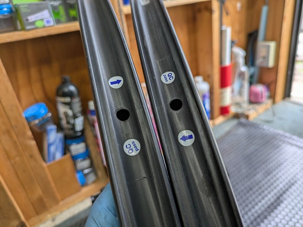 この重量でリムは画像の通り、リムテープの不要な構造をしていますので、実際に運用するときはリムテープ分の数g~十数gかとは思いますが軽量に運用できるはメリットです。