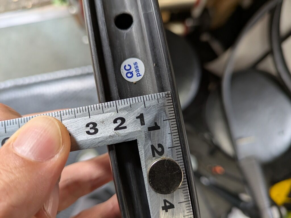ビードフック部というか、タイヤ側のリム部では29.5mmぐらいですので、U字というよりかはかなりふっくらとした丸みを帯びた形状のリムです。