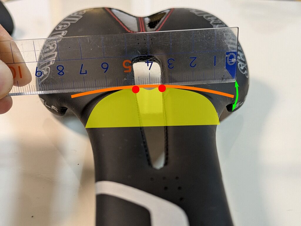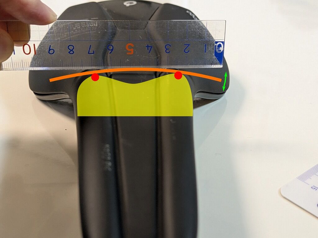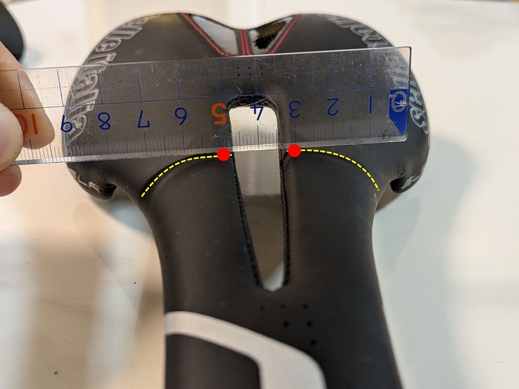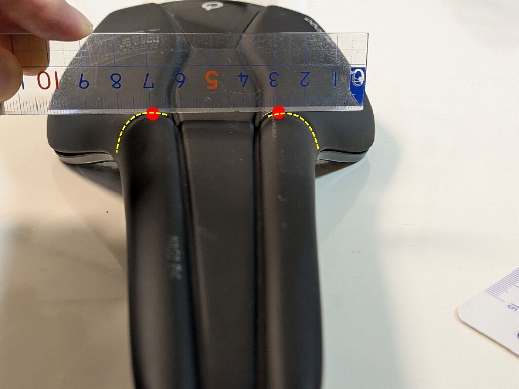 下の画像の計測場所のサドルの幅はおおよその中心となる70mmの部分です。