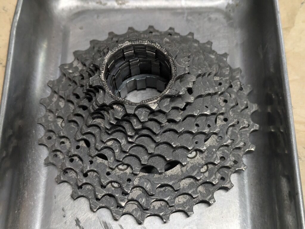 カセットスプロケットにはしっかりと油汚れが付着し、