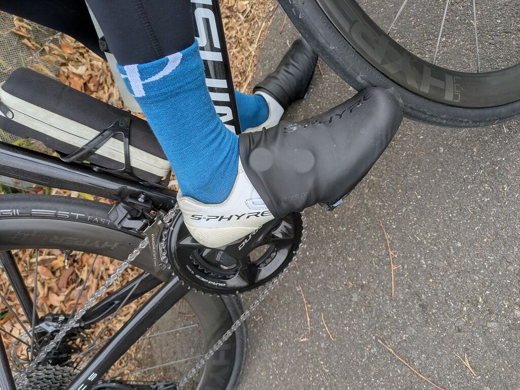 ペダリングへの干渉も一切ありませんでした。シューズとの相性も良く、「厚すぎて窮屈になる」「薄すぎて冷える」といった、冬ソックスにありがちな弱点がどちらも見られません。それでいて保温性はしっかり確保されており、厚みと断熱性のバランスが非常に優れていると感じました。感覚的には「ここから少しでも厚くなるとマイナスに転ぶ」というギリギリのラインで絶妙に仕上げている印象です。