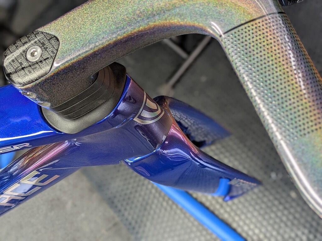 さらに、ヘッドセットスペーサーと隙間なく統合されることで、前面投影面積とドラッグを徹底的に削減しています。